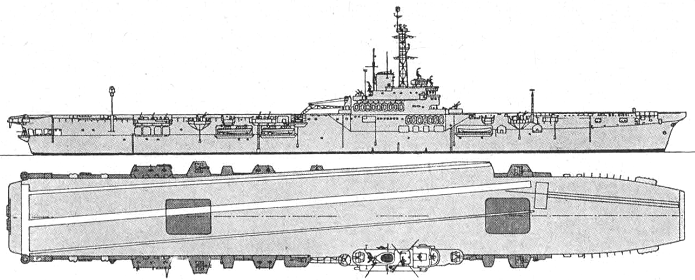 Melbourne:(fd ~ 6,500m², ha - 2,142m² / 11,355m³), Flight deck: 213.8x38.4m; hangar: 135.3x15.8x 5.3m. Two lifts: 17.7x12.2m, 11t. 1 catapult BS-4. Aircraft fuel stowage: 802,000l of jet fuel and 18,900l of petrol.