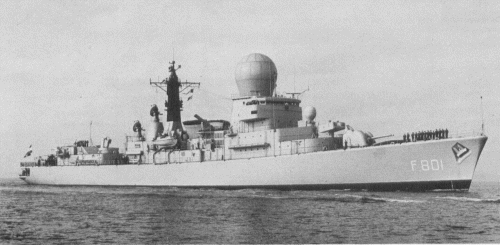 These two large missile frigates were designed as replacements for the postwar 152mm gun cruisers of the De Ruyter class. Staff requirements stipulated that they be able to protect a task force or convoy against aircraft and guided weapons, and incorporate sophisticated command facilities; they would have a secondary ASW and anti-ship capability. Since completion Tromp and De Ruyter have served as flagships of two of the three anti-submarine task groups established in accordance with the 1974 Fleet Plan.