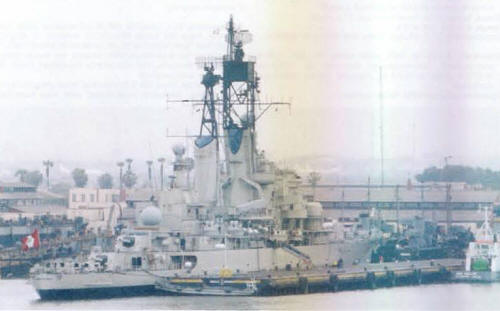 Former Dutch De Ruyter class cruisers. After sale to Peru Aguirre had her Terrier missile system removed and she was converted into a helicopter cruiser with 35x17m flight deck and large 20.5x16.5m hangar capable of operating up to three Agusta ASH-3D Sea King helicopters armed with AM39 Exocet missiles. Conversion was completed on 31 October 1977. Almirante Grau was commissioned 23.5.1973.