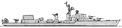 | Armament | 1 x 1 Malafon ASuM (13 Malafon), 2 x 1 - 100/55 Mod 1953, 2 x 3 - 550 TT (12 L3), 1 x 4 - 305 ASWRL, 1 helicopter (Alouette II) |