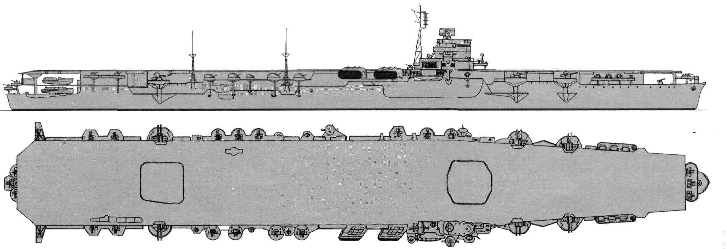 | Armour, mm | belt: 46 (165 abreast magazines), lower hangar deck: 25 (56 over magazines) |