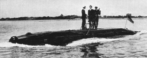 Midget submarines intended for actions against the ships at the bases. War department became the initiator of creation of that boats. Under its order in 1939 designing of midgets for riverine service has begun. Soon the order has transferred to Admiralty needed similar craft for operations against enemy large ships. Armament of midget submarines was consisted of 2 dropped explosive charge about 2000kgs of explosives each. After clock mechanism setting for certain time submarine should dump them under the bottom of enemy ship and escape on safe distance. Midgets were delivered to their operation area under tow of large submarines of "Т" or "S" classes. Towing was effected at speed nearby 10.5kts. In comparison with prototypes, serial boats had increased from 60 to 95m operational diving depth. On the basis of Х5 class for actions on Pacific Ocean a little increased boats of "ХЕ" class, and also training "XT" class boats were built.